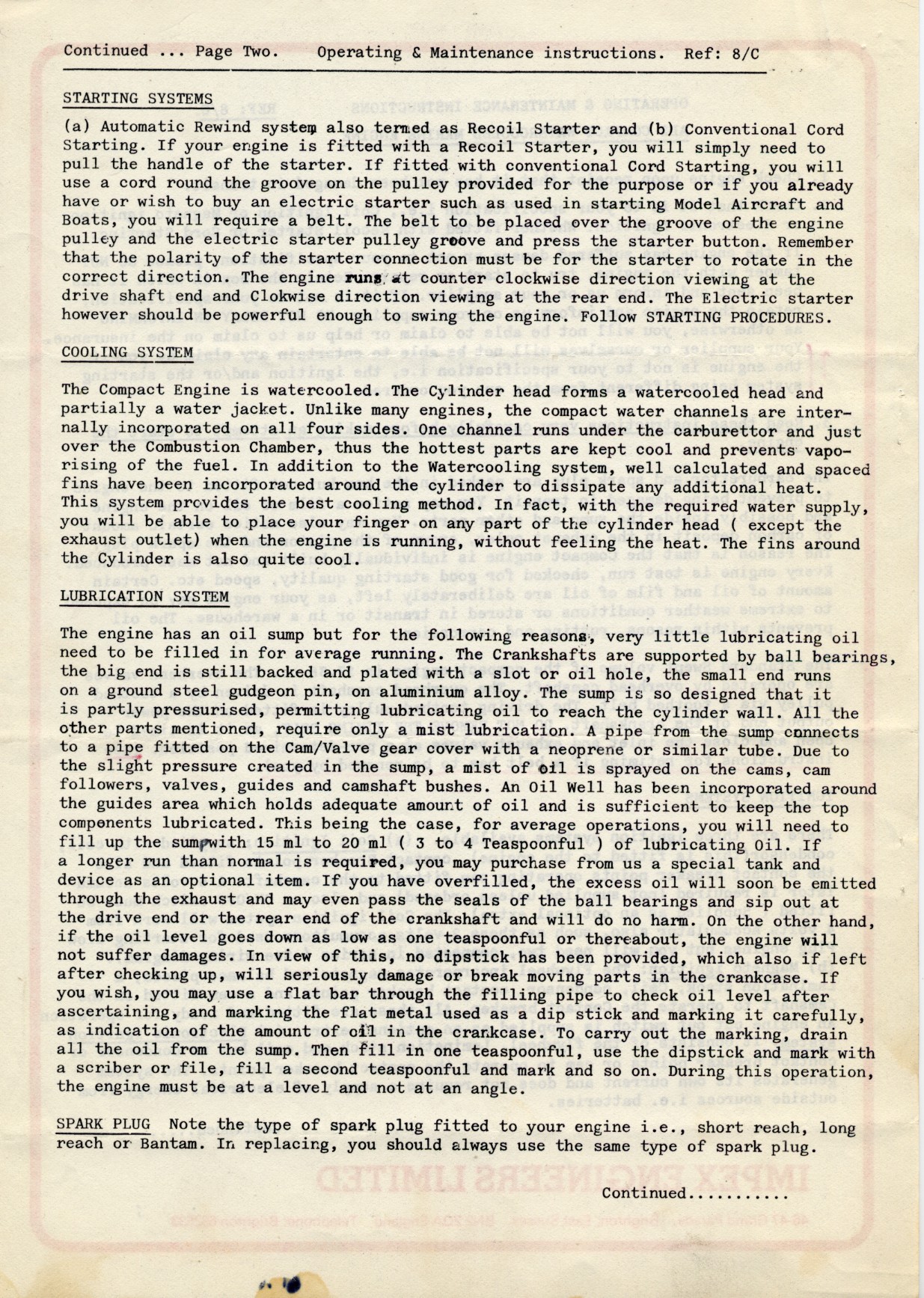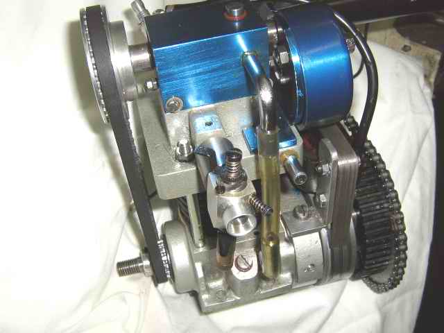 Ils étaient disponibles en 17, 22,5 ou 30 CC avec allumage par magnéto, celui-ci est équipé d'un démarreur électrique qui n'est sans doute pas d'origine, le boîtier cylindrique anodisé bleu, visible à l'avant de la culasse, contient le rupteur ou vis platinées).
