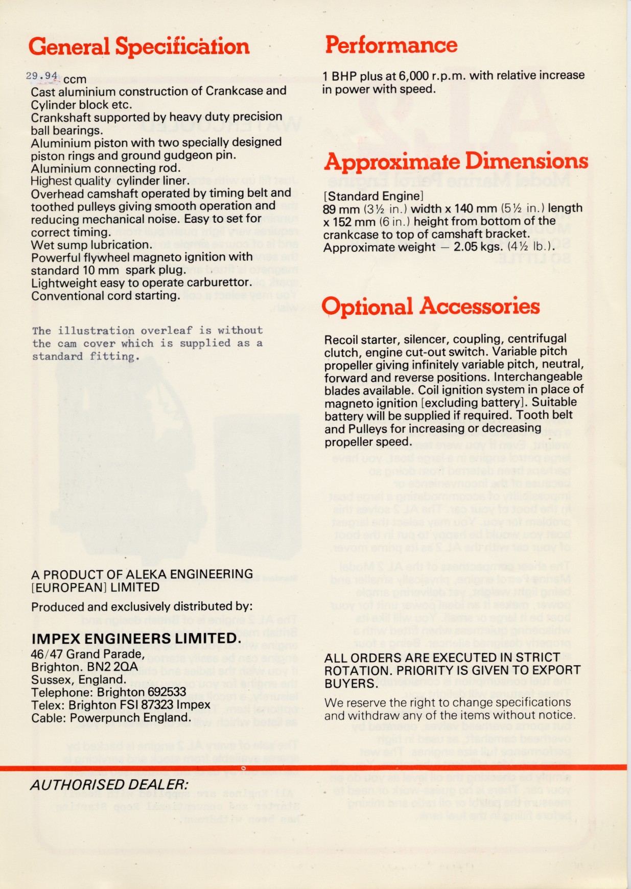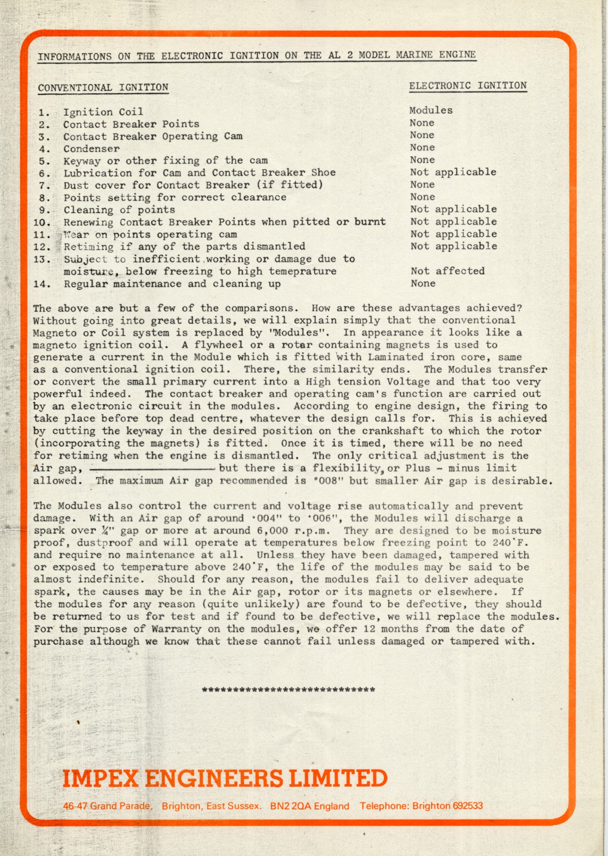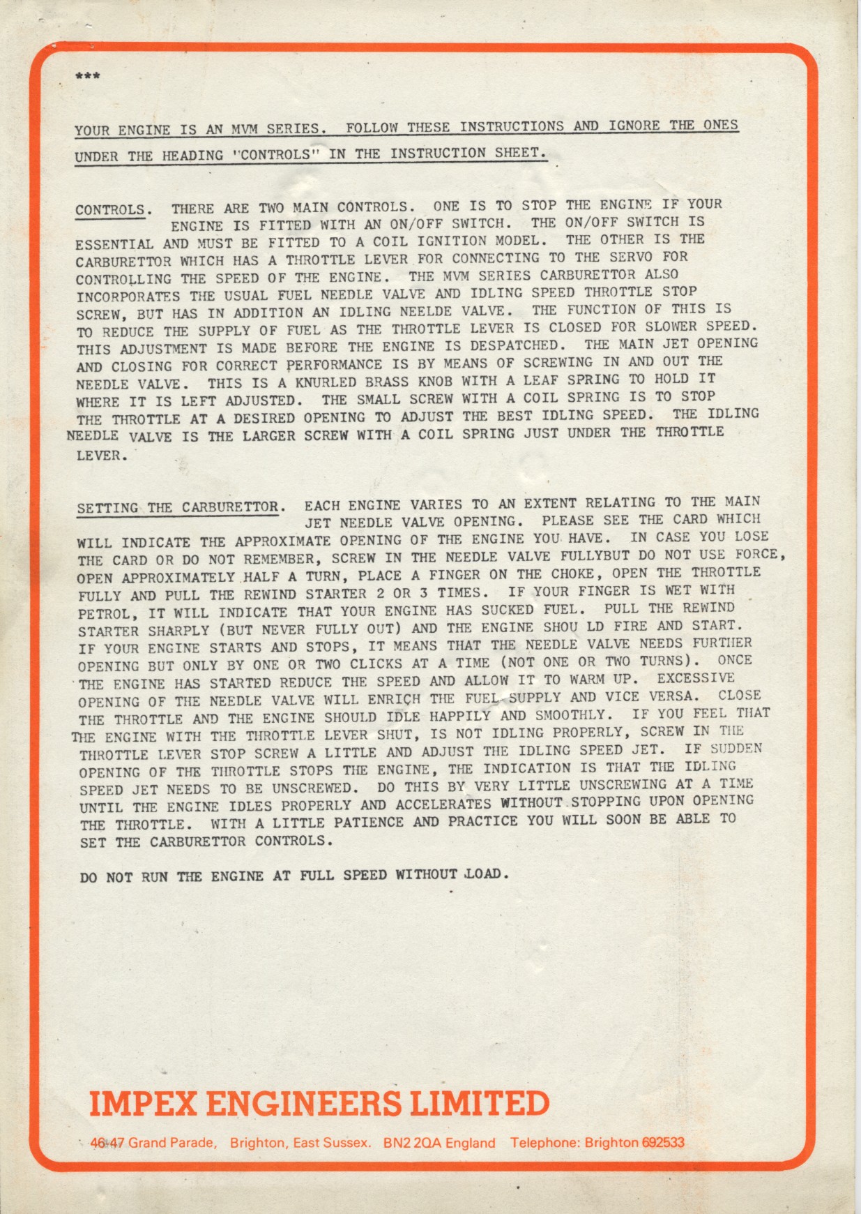 Moteurs 4 temps à arbre à came en tête (OHV) fabriqués en Angleterre par IMPEX ENGINEERS à Brighton vers la fin des années 70.